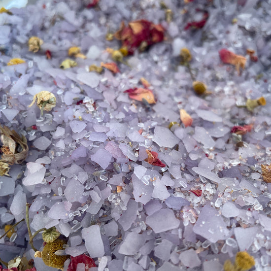 Our Roots & Petals Mineral Bath blends the grounding power of mineral salts with the softness of organic botanicals — lavender, rose, and chamomile — to relax the body and calm the mind. As the salts dissolve, butterfly pea flower releases a tranquil blue hue, transforming your bath into a soothing mineral oasis.